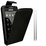 KC-Electronics Samsung Galaxy Ace S5830 Black Leather Flip Case and 3 Pack Screen Protectors