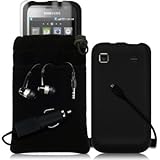 SAMSUNG i9000 GALAXY S 5 PC LUXURY GIFT ACCESSORY PACK – BLACK SKIN CASE, SCREEN PROTECTOR, POUCH CASE, CAR CHARGER, HEADSET PART OF THE QUBITS ACCESSORIES RANGE