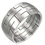 Stainless Steel puzzle band ring with unique laser cut out design, width 8mm. Why choose a Stainless Steel ring for a man or woman? Well its one of the most affordable, and hard wearing metals that we sell in our jewellery range. Stainless steel won’t wear down like silver or gold, it won’t ever tarnish and above all it will take some real knocks which makes it perfect for Mens Rings. The ring will be delivered in a quality ring box with FREE uk shipping, the perfect gift.